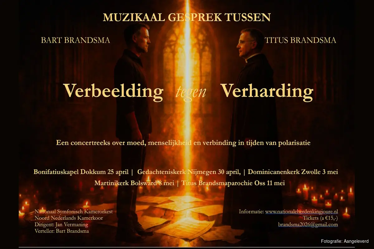 Onder muzikale leiding van Jan Vermaning brengen het Nationaal Symfonisch Kamerorkest en het Noord Nederlands Kamerkoor een zorgvuldig samengesteld programma waarin muziek en gesproken reflectie elkaar versterken. De concerten vinden plaats op betekenisvolle locaties door het land en worden omlijst met beeldmateriaal, waaronder historisch archiefmateriaal van Titus Brandsma.